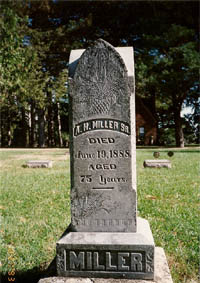 He leaves to mourn his loss four sons, Jacob Miller of Waukegan, Ill., Edward Miller of Wayne, Nebr., Fred Miller of Oakley, Idaho, and Harry Miller of Belvedere, Kansas; two daughters, Mrs. C. Weible of Durham, Kans., and Mrs. A. M. Hyatt of Onana, Iowa. Also Twenty one grandchildren, ten great grand children, two sisters and a host of other relatives and friends.