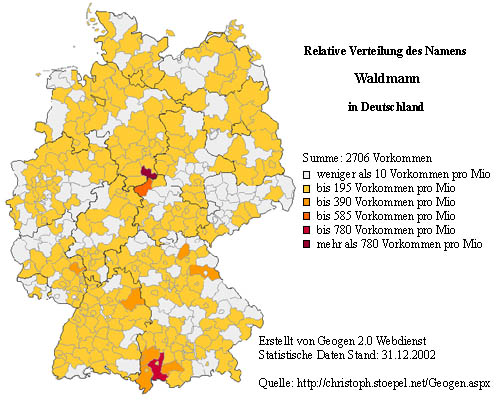 ![]() Ich muss zugeben, ich war etwas verwundert nachdem ich diese Verteilung sah. Meine Erfahrung ist eigentlich, dass der Name Waldmann im