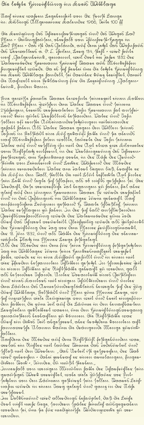 Schrift. Die letzte Hinrichtung im Kreis Wittlage